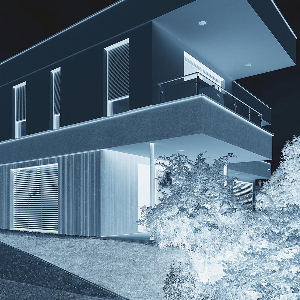 Diese Mehrteiligkeit versuche ich immer wieder in neuen Varianten durchzuspielen. Auch im Sinne einer Veränderung des Standpunktes, die der Apparat zulässt, habe ich nicht nur diese Variabilität der Perspektive auf einen Gegenstand oder Ort, sondern auch Transformationen der Farb- und Tonwerte in den Zyklus INTERVENTIONEN aufgenommen.